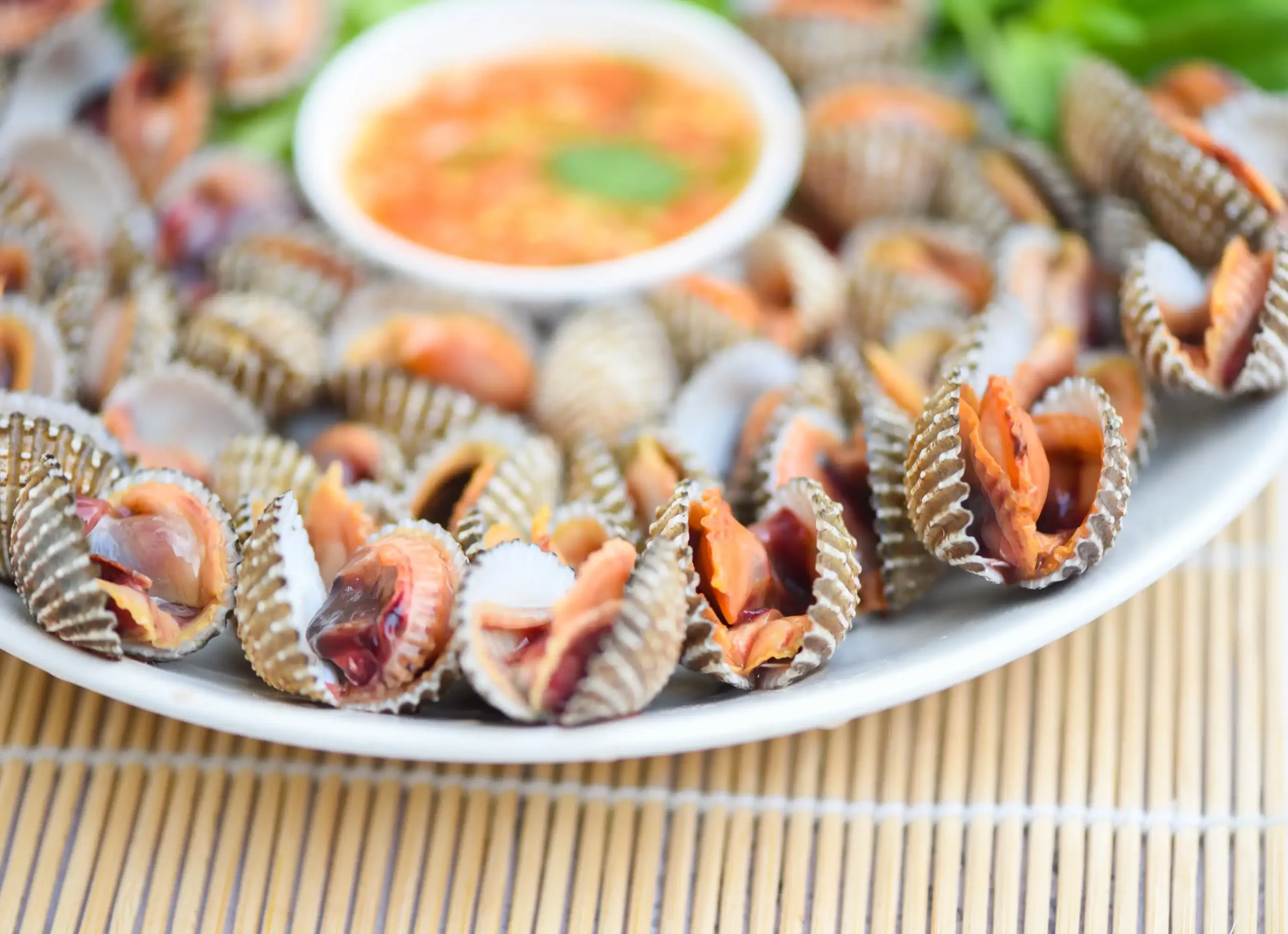 cockles-white-plate-with-seafood-sauce-table-background-fresh-raw-shellfish-blood-cockle-ocean-gourmet-seafood-restaurant (Web H)